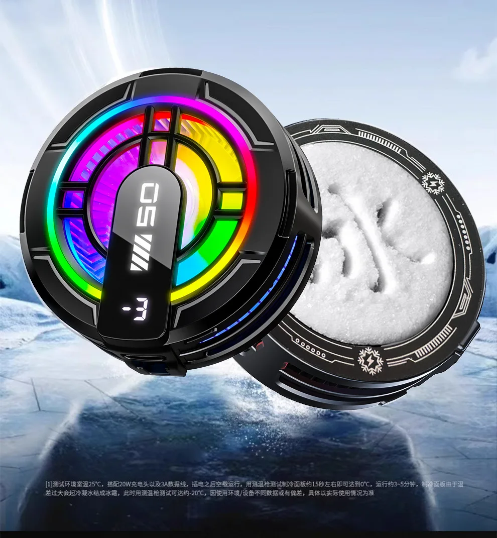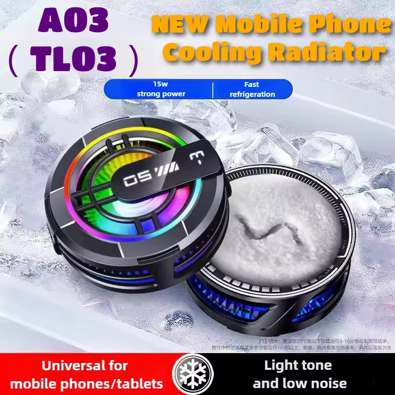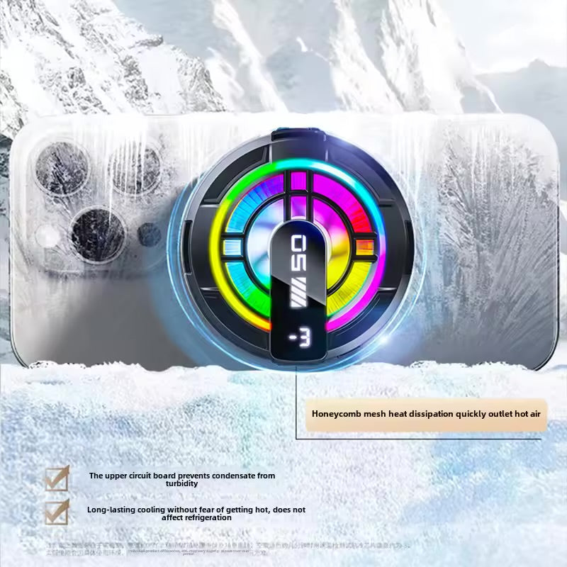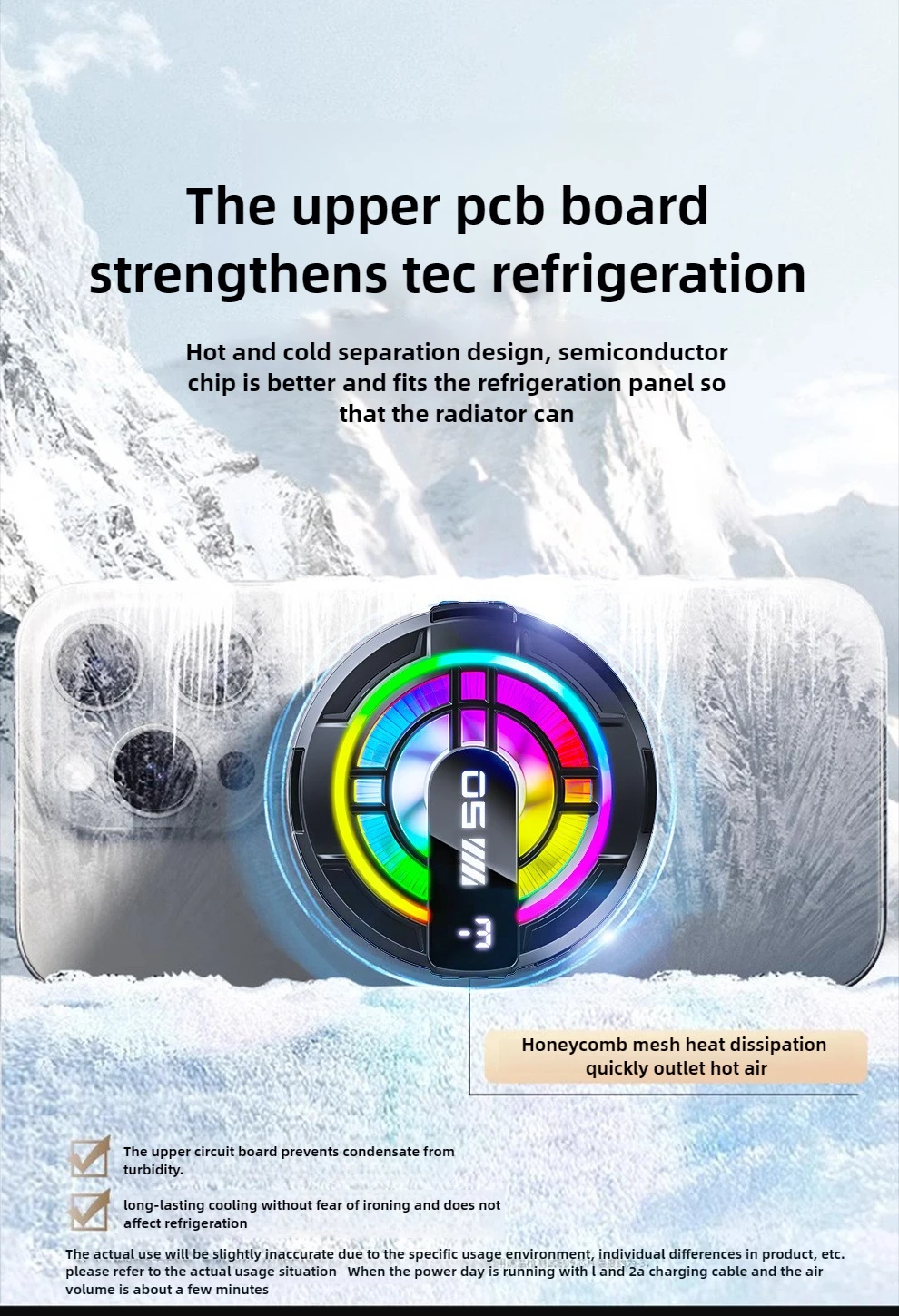 A03 مبرد هاتف أشباه الموصلات مشبك خلفي مغناطيسي مبرد تبريد ثلجي مع شاشة رقمية لدرجة الحرارة ضوء RGB لنظام IOS أندرويد