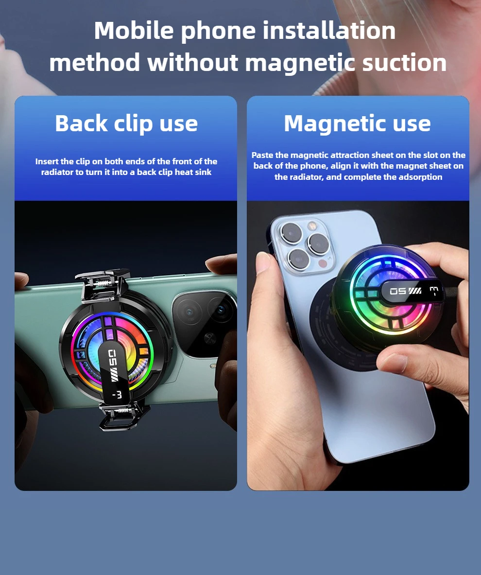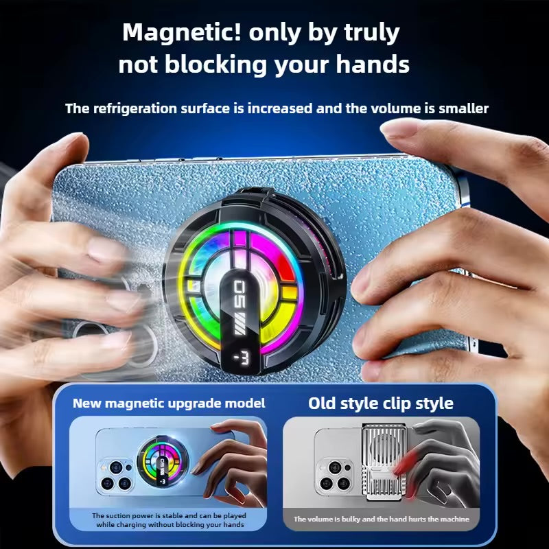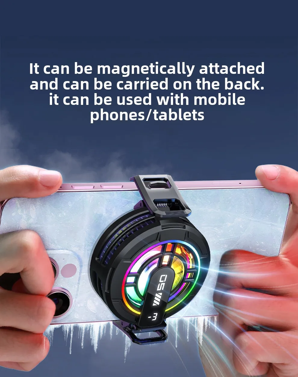 A03 مبرد هاتف أشباه الموصلات مشبك خلفي مغناطيسي مبرد تبريد ثلجي مع شاشة رقمية لدرجة الحرارة ضوء RGB لنظام IOS أندرويد