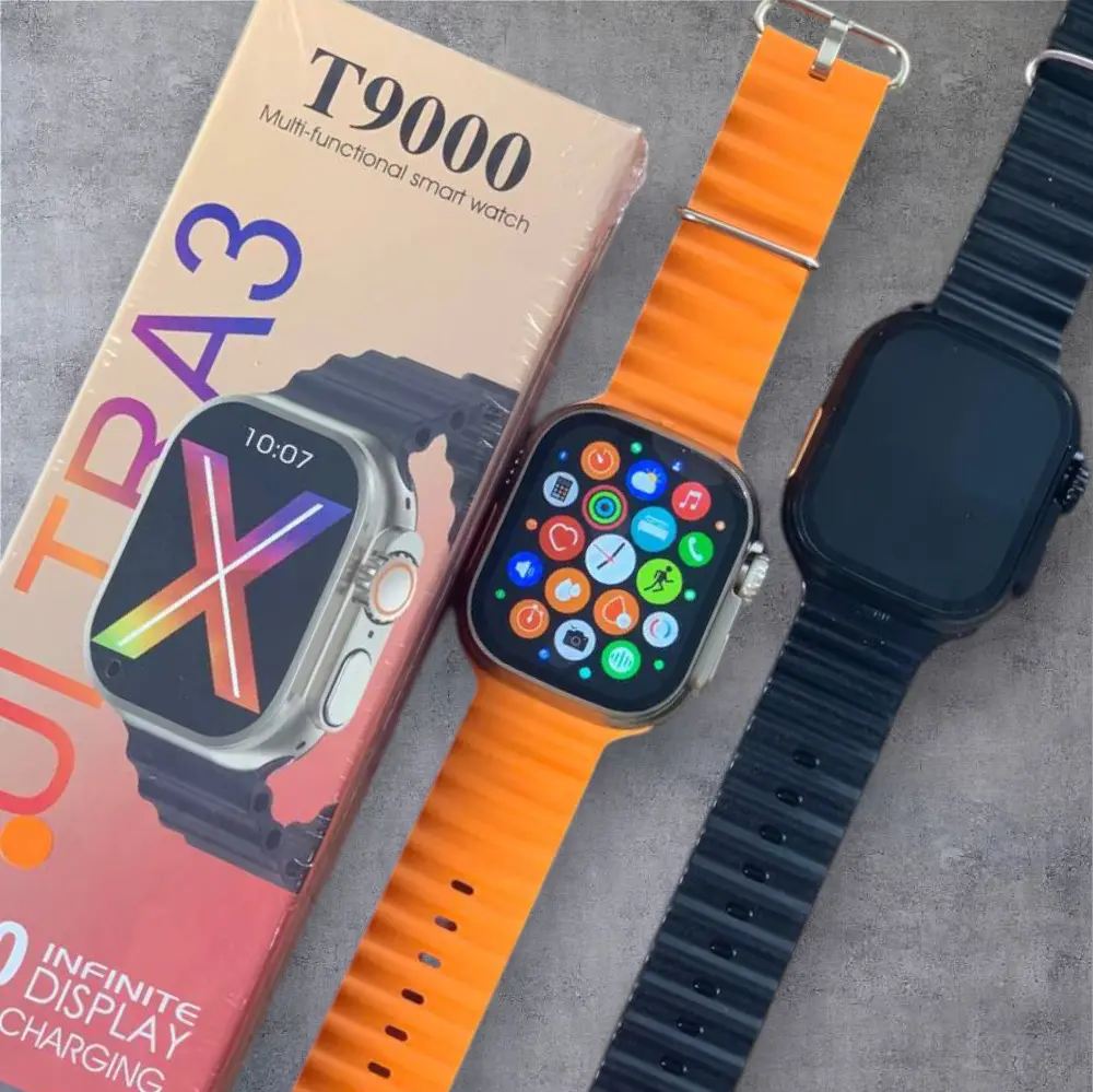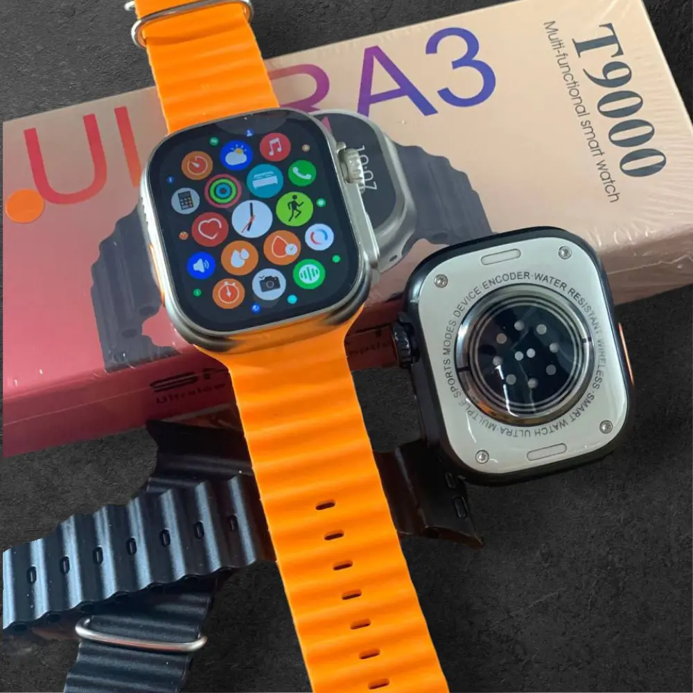 T9000 Ultra 3 – أعلى إصدار من ساعات Ultra 3، بمواصفات خارقة وشكل فخم! لو بتدور على أقوى وأحدث ساعة ذكية بشكل ألترا، يبقى مفيش غير T9000 Ultra 3 – أعلى نسخة نزلت من سلسلة Ultra 3، ومليانة مميزات هتخليك مش محتاج أي حاجة تانية. شاشة مقاس 49mm – أكبر شاشة ممكن تلاقيها في الساعة، وبتيجي بجودة Full HD، يعني ألوان واضحة جدًا وتفاصيل دقيقة هتبهرك فعلاً. مكالمات وإشعارات بكل سهولة – استقبل مكالماتك وإشعاراتك كلها على الساعة، ومعاك ميزة تخزين لحد ٥٠ رقم متسجلين، وتقدر تتصل بيهم مباشر من الساعة من غير ما تلمس الموبايل. تخصيص الخلفية – تقدر بكل سهولة تحط صورتك الشخصية أو أي صورة تحبها كخلفية للشاشة وتغير شكل الساعة على ذوقك. تصميم بلوك بـ ٤ مسامير – شكل احترافي ومتقفل بجودة عالية يديك إحساس بالفخامة والقوة. ستراب مباشر بلون أورنج – الساعة بتيجي باللون السلفر مع ستراب أورنج شيك وعصري يخلي شكل الساعة ملفت للنظر. بطارية تدوم 24 ساعة وأكثر – تقدر تستخدمها طول اليوم بدون قلق، بطارية قوية تتحمل معاك الاستخدام المتواصل. T9000 Ultra 3 هي أعلى وأحدث ما وصل في ساعات الألترا، بتجمع بين الشكل، الأداء، والإمكانيات اللي صعب تلاقيها في ساعة تانية بالسعر ده.